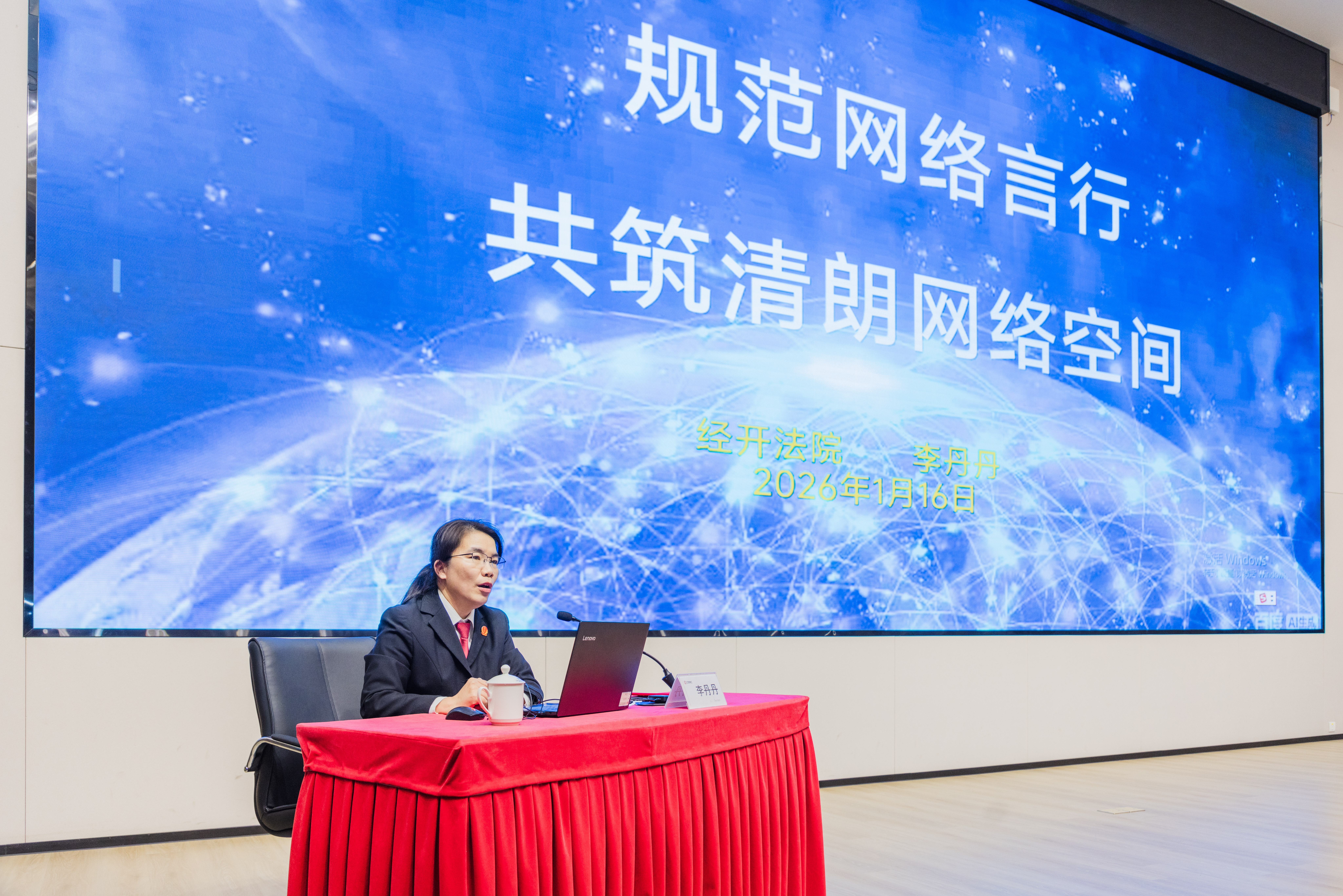 1月16日,经开区法院审管办副主任李丹丹受邀赴常州铁道职业技术学院,为在校学生开展了一场以“规范网络言行 共筑清朗网络空间”为主题的普法课堂。班级老师、辅导员及2025届全体学生参加了此次活动。